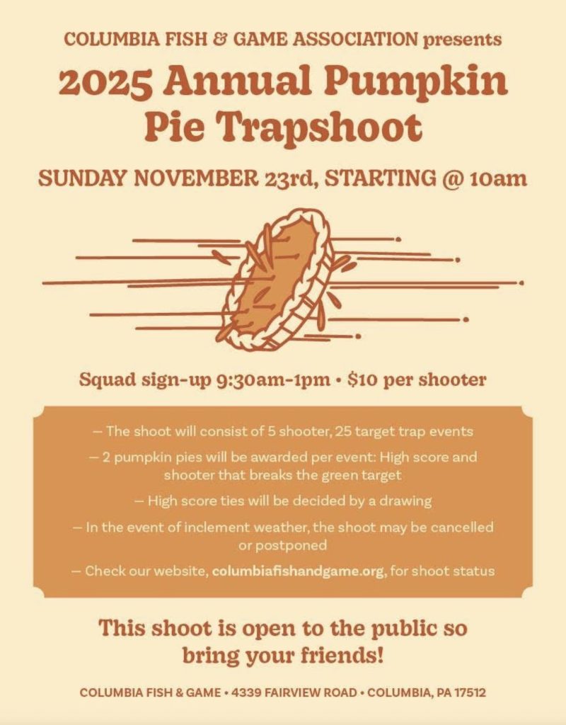 On Sunday, November 23rd we’ll be holding our annual Pumpkin Pie Trapshoot. The shoot will consist of 5 man, 25 target events, and 2 pumpkin pies will be awarded per event: High score and shooter that breaks the green target. High score ties will be decided by a drawing.
